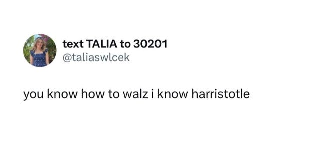 🏈 There have been so many fun highlights from the DNC (it looks like it’s been quite the rager, to be honest), and one of my favorite clips so far was when some of Tim Walz’s former players from the Mankato West football team came on stage to show their support of their old coach. Did you know he led them to a state championship? I’m feeling some big Eric Taylor vibes from Coach Walz.